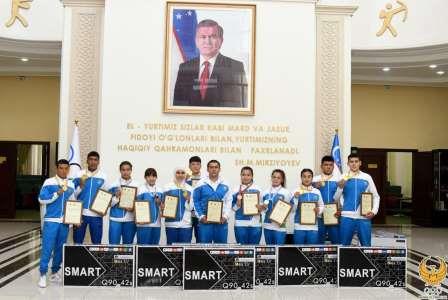 Shundan soʻng Qozonda muvaffaqiyatga erishgan belbogʻli kurashchilarimiz va sohani rivojlantirish yoʻlida samarali mehnat qilayotgan murabbiylar, federatsiya mutasaddilari, OAV vakillariga esdalik sovgʻalari topshirildi. Taʼkidlash joiz, belbogʻli kurashchilarimiz Qozonda 7 ta oltin, 3 ta kumush va 1 ta bronza medallarini qoʻlga kiritib, delegatsiyamizning yuqori pogʻonaga koʻtarilishlarida munosib hissa qoʻshdilar.