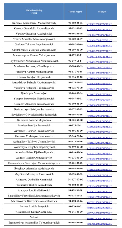 Namangan viloyat Uychi tumani MFY ma’lumot