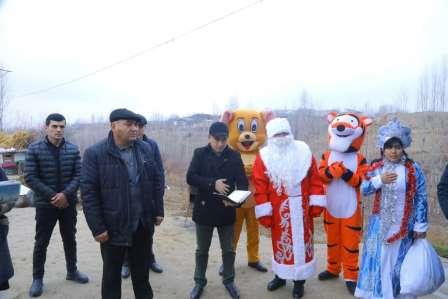 Туман ҳокими Шуҳрат Мусаев бошчилигида ҳоким ўринбосарлари, секторлар раҳбарлари, банк, бюджетдан ташқари пенсия жамғармаси вакиллари кам таъминланган оилаларга пул маблағлари, янги йил совғалари ва озиқ-овқат маҳсулотларини тарқатишди.