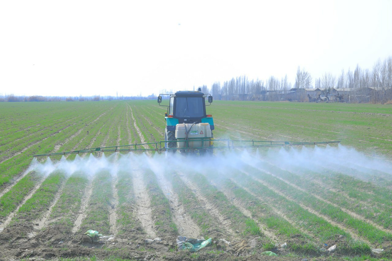 "Ёрқўрғон соф толаси" фермер хўжалигида ғаллани ўғитлаш жараёни давом этмоқда. "Илҳомжон Икромжон" фермер хўжалигида ғаллага суспензия сепилмоқда.