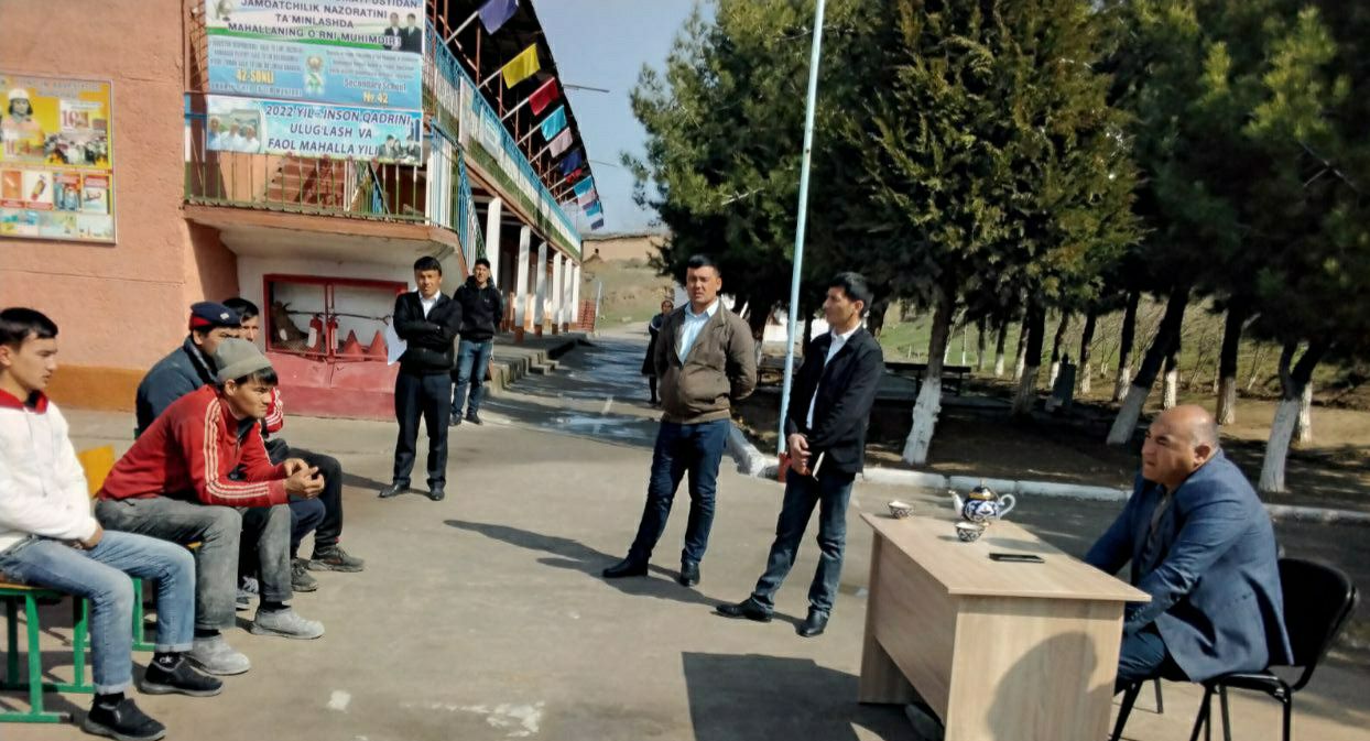 Унда бир қатор бошқа масъул ташкилотлар раҳбарлари ҳамда мазкур маҳаллада яшовчи 30 нафар ёш иштирок этди. Учрашув давомида ёшлар ўзларини қизиқтирган саволларга жавоб олдилар, ечилмай турган муаммолари бўйича мурожаат қилишди. “Т.Мавлонов” кўчасида яшовчи Гулноза Отахонова компьютер курсида ўқиш истагида эканлиги, аммо маблағи етишмаётганини айтди. Ушбу масала жойида ҳал этилди, яъни Янгиҳаёт МФЙ ёшлар етакчиси томонидан ташкил қилинган "Юксалиш" ўқув марказида таҳсил олиши учун рўйхатга олинди. Яна шу кўчада жойлашган бўш бинони таъмирлаган Нодирбек Турсунбековнинг спорт анжомларни олиш юзасидан қилган мурожаати Ёшлар ишлар агентлиги раҳбари М.Заитов томонидан бориб ўрганилди ва ижобий ечим топиладиган бўлди.