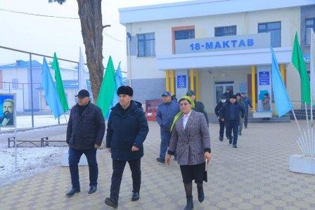 Дастлаб Қумтепа маҳалласида жойлашган 18-мактабда куз-қиш мавсумига тайёргарлик, ўқув хоналаридаги ҳарорат, машғулот жараёнлари билан танишилди.
