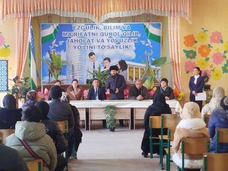 Уни мактаб директори У.Ғаниев очди ва олиб борди. Республика Маънавият ва маърифат маркази туман бўлинмаси раҳбари Э.Юнусова мазкур тадбирнинг мазмун- моҳияти ҳақида гапириб, юртимиздаги ислоҳотлар хусусида тўхталиб ўтди.