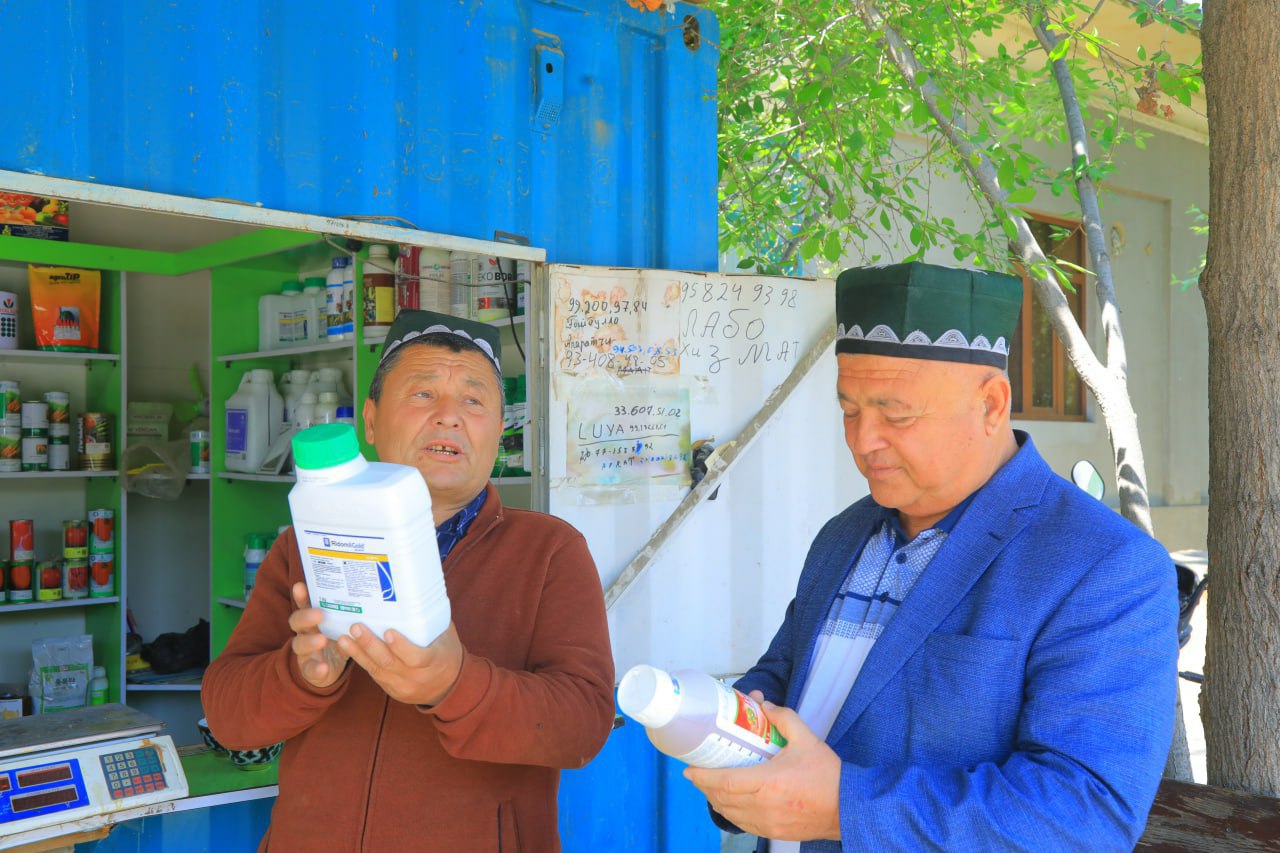 Уйчи тумани Кесканёр МФЙ ҳудудида фаолият олиб бораётган якка тартибдаги тадбиркор Аюбхон Собитхонов қишлоқ хўжалиги экинларини етиштиришда фойдаланиладиган кимёвий воситалар дўконида 226 хил турдаги кимёвий воситалар мавжуд. Ундан 150 хили зарарли ҳашаротларга қарши ишлатиладиган воситалардир. Шунингдек, 30 фоизи ёввойи ўтларга, 20 фоизи ўсимликларнинг замбуруғ касалликларига қарши қўлланилувчи химиявий воситалар ҳисобланади.