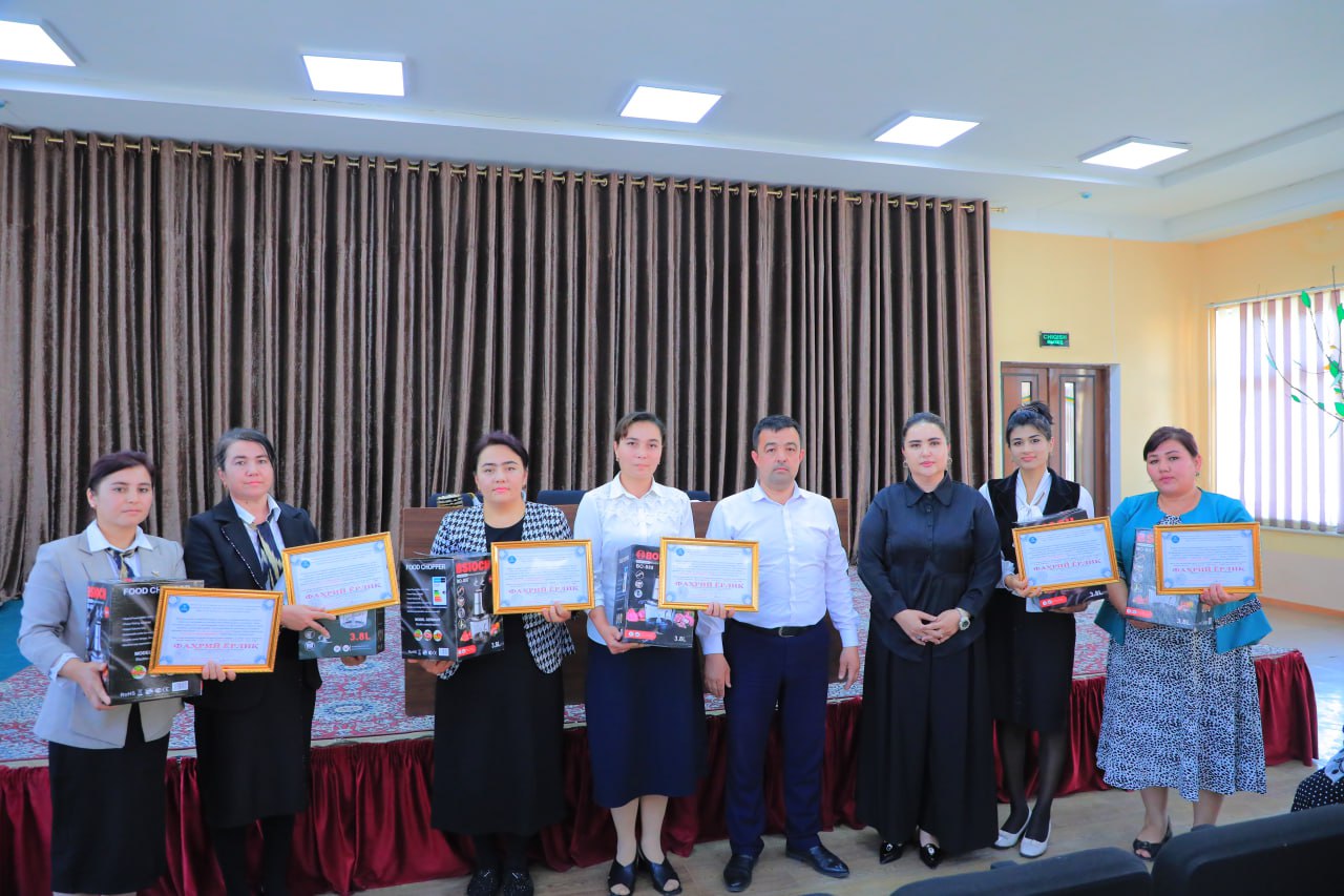 1-мактабда ташкил қилинган тадбирда туман ММТБ бошлиғи Музаффар Мўминов жамоаларни қутлаб, сертификат ва фахрий ёрлиқларни топширди.