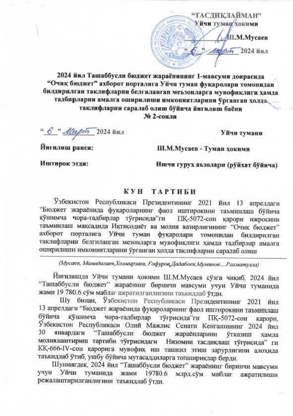 Уйчи тумани 3-сектор ҳудудидаги маҳаллалар жамланиб, Баландариқ МФЙда жойлашган “Жайхун” тантаналар мажмуасида ифторлик дастурхони ташкил этилди.