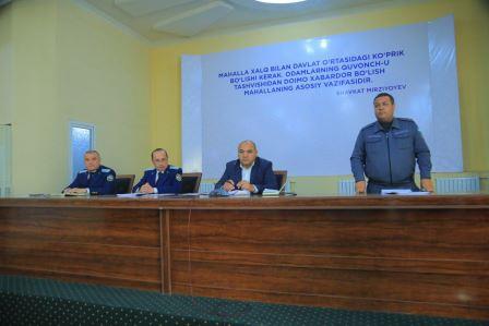 Тадбир давомида ижтимоий-маънавий муҳитни соғломлаштириш, аҳоли ўртасида соғлом турмуш тарзини шакллантириш, уюшмаган ёшлар, хотин-қизлар ўртасидаги муаммолар, ноқонуний никоҳ ва ўқишхонликлар, ажрим, эрта турмушнинг олдини олиш мавзусида мулоҳазалар билдирилди. Фаол ўқувчига китоб совға қилинди.
