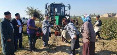 Бугун туман бош имом хатиби Олимхон Исақов ҳамда поплик меҳнат фахрийси Жўрабой ота Маматхонов бошчиликларида бир гуруҳ нуроний отахонлар ташаббуслари билан “Деҳқонобод АХИ Уйчи”, “Тола”, “Барногул зиё файз”, “Илҳомжон Икромжон” фермер хўжаликларига ташриф буюрилиб, илғор теримчи ва ҳашарчиларга эсдалик совғалари топширилди.