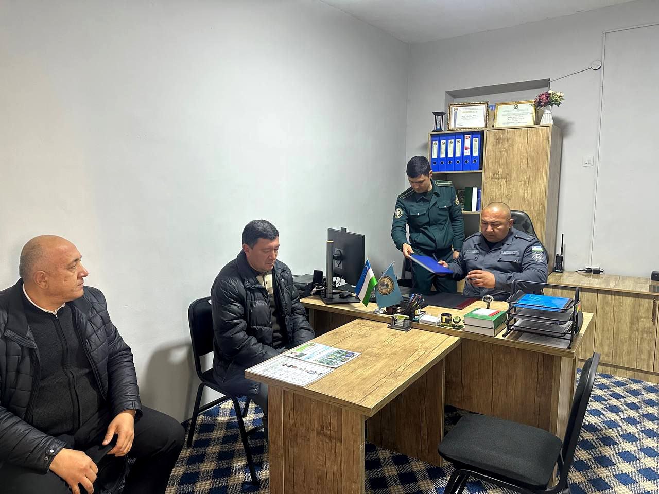 Мамлакатимиз раҳбарининг 2025 йил 3 январдаги "2025 йилда Республика маҳаллаларида хавфсиз муҳитни яратиш ва ҳуқуқбузарликларнинг барвақт олдини олиш тизими самарадорлигини янада ошириш бўйича чора-тадбирлар тўғрисида"ги ПҚ-1-сонли Қарори ижроси юзасидан Соку, Шифокор, Тепасарой маҳаллаларида амалга оширилаётган ишлар ва маҳалла еттилиги фаолияти Уйчи туман ИИБ бошлиғи Умиджон Эшанов томонидан ўрганилди.