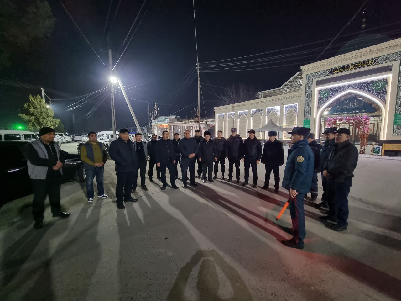 Сектор раҳбарлари томонидан тумандаги жоме масжидларига ташриф буюрилиб, хизмат ташкил этилганлиги, ҳушёрлик ва хизмат интизомига риоя қилиш ҳолати билан танишилди. Фуқароларнинг хавфсизлигини таъминлаш учун жалб қилинган куч воситалари ИИБ, миллий гвардия, фавқулодда вазиятлар, ёнғин хавфсизлиги ходимлари, жамоатчилик вакилларига қўшимча тушунтиришлар берилди.