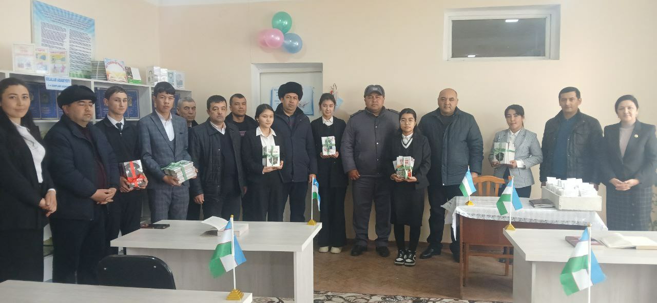 Туман ҳокими ташаббуси билан мактаб кутубхонасига янги мебель жиҳозлари топширилди. Сектор раҳбарлари ҳамда Республика маънавият ва маърифат маркази туман бўлинмаси, ёшлар ишлари агентлиги томонидан 200 дона янги бадиий адабиётлар мактаб кутубхонасига совға қилинди.
