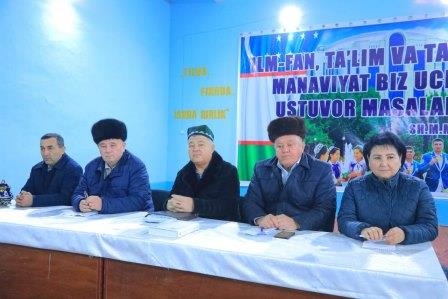 Унда “Нуроний” жамғармаси туман бўлими раиси Т.Исматиллаев, диний идора вакили С.Ғаниев, Республика маънавият ва маърифат маркази туман бўлинмаси бош мутахассиси Д.Абдиқахаров, ЎзХДП туман кенргаши раиси Ғ.Жўраев, маърифат тарғиботчилари М.Юлдашев, А.Нажмиддинов, мактаб директори Р.Назароваларнинг “Мактаб – ота-она – маҳалла” ҳамкорлигини мустаҳкамлаш бўйича маърузалари тингланди.
