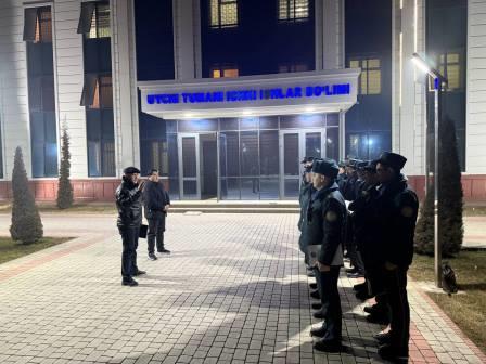 Уйчи туман прокурорининг ўринбосари О.Жураев ва бошқа ходимлар томонидан туман ҳудудида жиноятчиликнинг олдини олиш мақсадида тунги гуруҳларга бириктирилган ходимларга хизмат йўриқномаси ўтказилиб, фаолияти назорат қилинди.