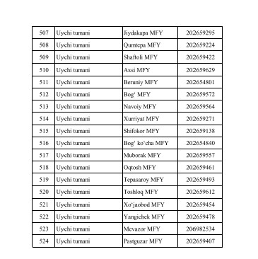 - Чуст туманида “Siberian Wellnes Namangan” МЧЖ қўшма корхонаси томонидан қиймати 50 млн долларлик “Пектин маҳсулотини ишлаб чиқаришни ташкил этиш” лойиҳасини амалга ошириш доирасида Россиянинг “Siberian Wellness” компанияси томонидан 25,8 млн доллар;