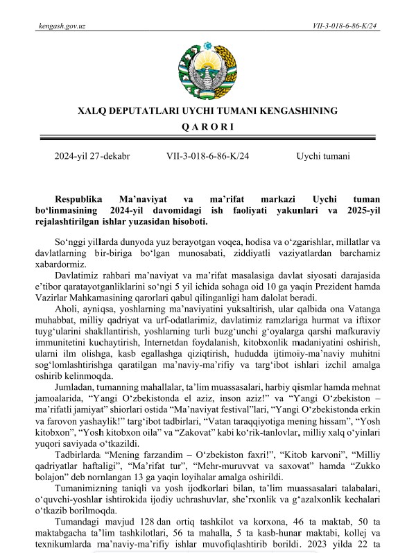 📜 2025 йил 1 январдан қишлоқ хўжалиги маҳсулотларини калибровка қилиш ва махсус идишларда қадоқлаш лойиҳалари ҳамда айланма маблағларини тўлдириш учун Компания ресурслари ҳисобидан миллий валютада револьвер кредитлар ажратилади.