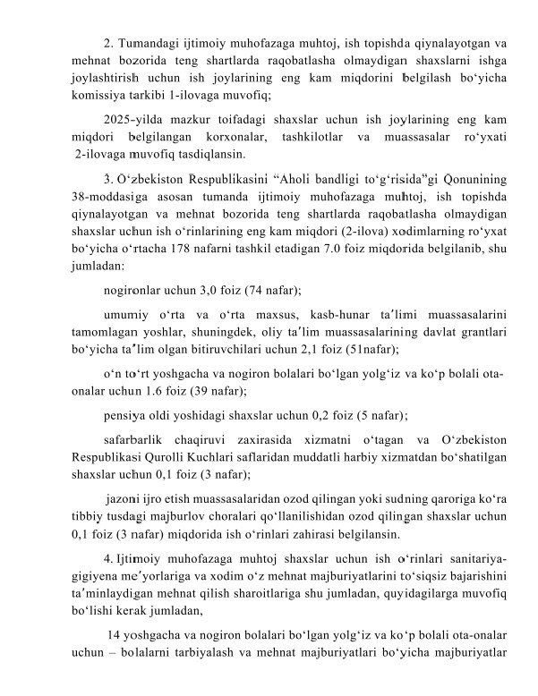 Бундан ташқари, жадид бобомиз Мулла Йўлдош Хилватий хонадонидаги уй музейи ташкил этилди. 4 нафар қатағон қурбонлари, 5 нафар маърифатли оила ҳонажонларининг пештоқларига ёрлиқлар илинди. Маънавий-маърифий ишларга доир 8 та турли номдаги китоб ва услубий қўлланмалар чоп эттирилди.2025 – “Атроф-муҳитни асраш ва “яшил” иқтисодиёт йили”да маҳалла маърифат тарғиботчилари иштирокида қуйидаги ишларни амалга ошриш кўзда тутганмиз. “Фазилатли ёшлар” лойиҳаси орқали ўрта махсус, касб-ҳунар ва олий таълим муассасалари битирувчиларини ишга жойлаштириш ҳамда хусусий тадбиркорлик соҳасига жалб этиш; Ёш авлоднинг ижодий ва интеллектуал салоҳиятини қўллаб-қувватлаш ва рўёбга чиқариш, болалар ва ёшлар ўртасида соғлом турмуш тарзини шакллантириш, уларни жисмоний тарбия ва спортга кенг жалб этиш; Маҳаллада ёш тадбиркорлар учун профессионал консалтинг хизматларини йўлга қўйишни таъминлашга қаратилган “Менинг бизнес лойиҳам” номли услубий қўлланма ишлаб чиқиш ва бепул тарқатиш.“Маънавият маршрути” лойиҳаси доирасида тумандаги 24 та номоддий ва маданий мерос объектларини кенг тағиб этиш.• “ЯШИЛ ТАРАҚҚИЁТ УЧУН” лойиҳаси орқали “Маънавият сектори” раҳбари бошчилигида маърифат зиёлилари, ташкилот ва муассасаларнинг маънавий-маърифий ишлар бўйича масъуллари, маҳалла маърифат тарғиботчилари, хотин-қизлар фаоллари ва меҳнат фаҳрийлари ҳамкорлигида “МАЪРИФАТ БОҒИ”ни ташкил этиш;• «яшил» иқтисодиётни ўсиши орқали аҳолининг иқтисодий фаоллиги ошишини;• маҳаллада томорқадан унумли фойдаланишни;• маҳалланинг ободлиги, кўчанинг кўкаламзорлаштирилишини тарғиб қилишни истиқболли режамизга киритганмиз.