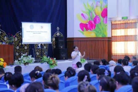 Шундан сўнг соғлиқни сақлаш вазирлигининг Саломатлик ва стратегик ривожланиш институти бошқарма бошлиғи, тиббиёт фанлари номзоди Феруза Тахирова томонидан соғлом турмуш тарзи ва соғлом оилани шакллантириш бўйича олиб бориладиган ишлар юзасидан энг керакли тавсиялар берилмоқда.