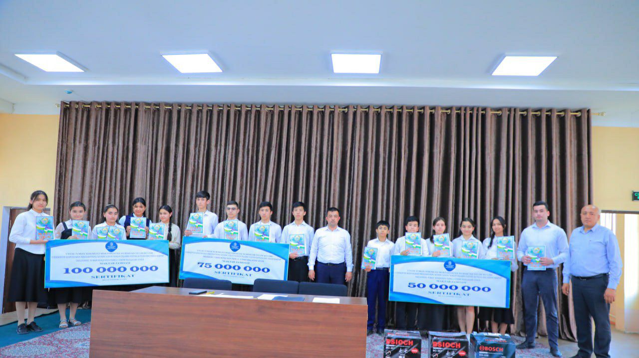 2-ўрин ва 75 миллион сўм пул мукофотини 26-мактаб жамоаси, 3-ўрин ва 50 миллион сўм пул мукофотини 6-мактаб жамоаси қўлга киритиди.